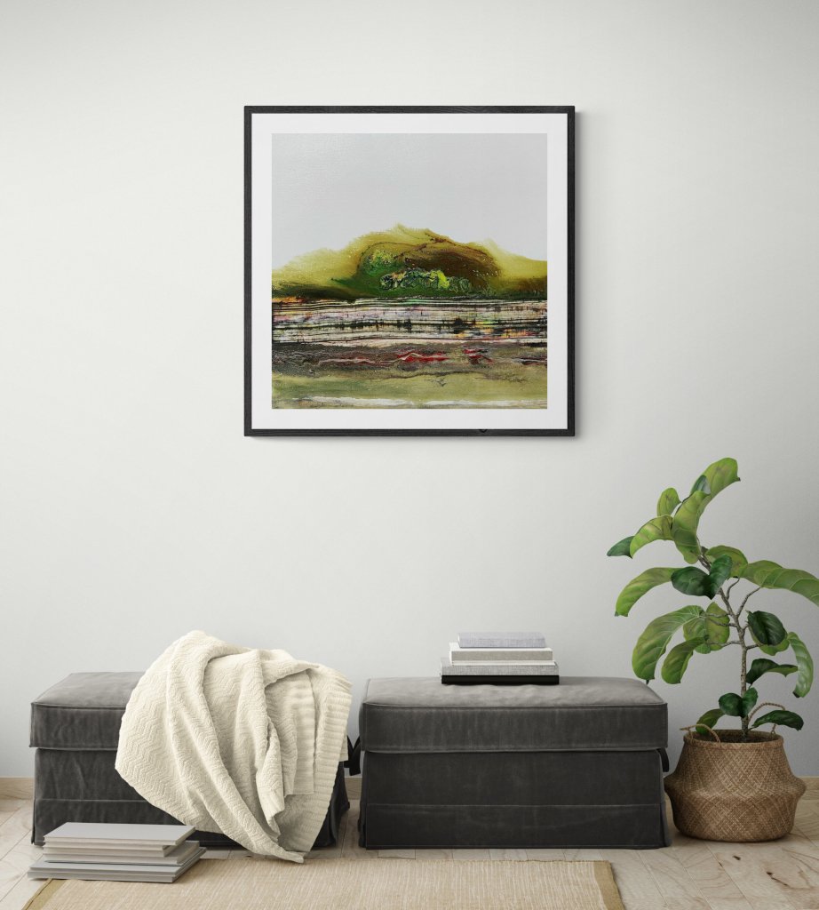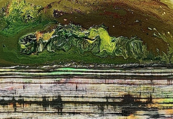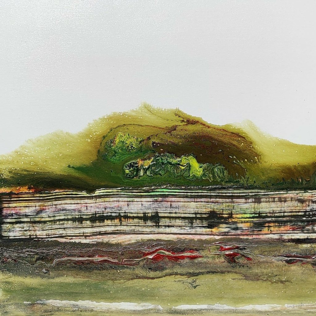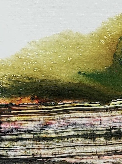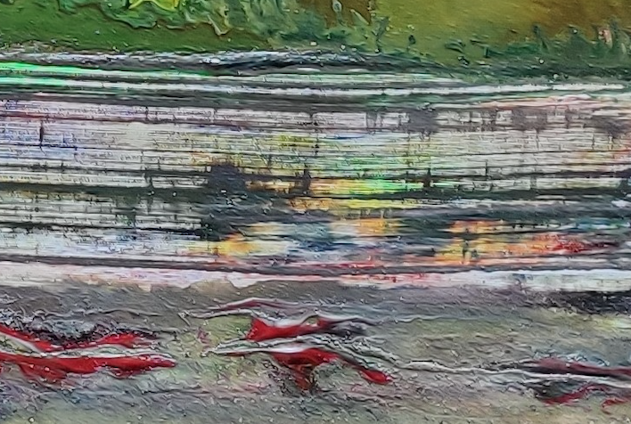Este cuadro ha sido pintado con pinturas acrílicas y barnices en dos capas. He retirado la primera capa para dejar a la luz los colores iniciales.