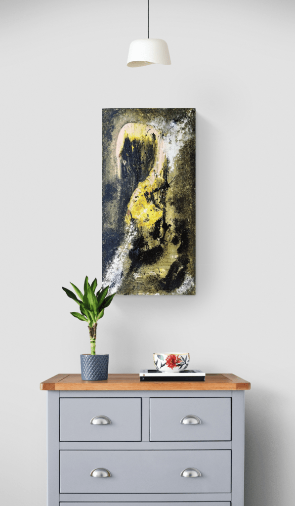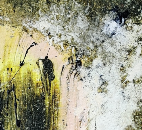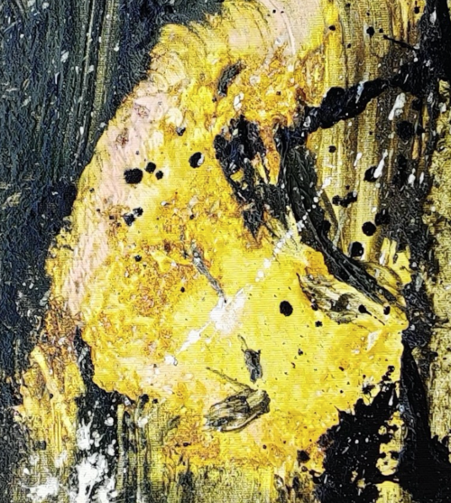 Este cuadro representa el perfil de una mujer medio oculta por la oscuridad, que contrasta con la luz que recibe en los laterales. Esta luz es la que llevamos todas las mujeres dentro. El resto de la obra son las dificultades de la vida con las que luchamos y han luchado las mujeres a lo largo de la historia.